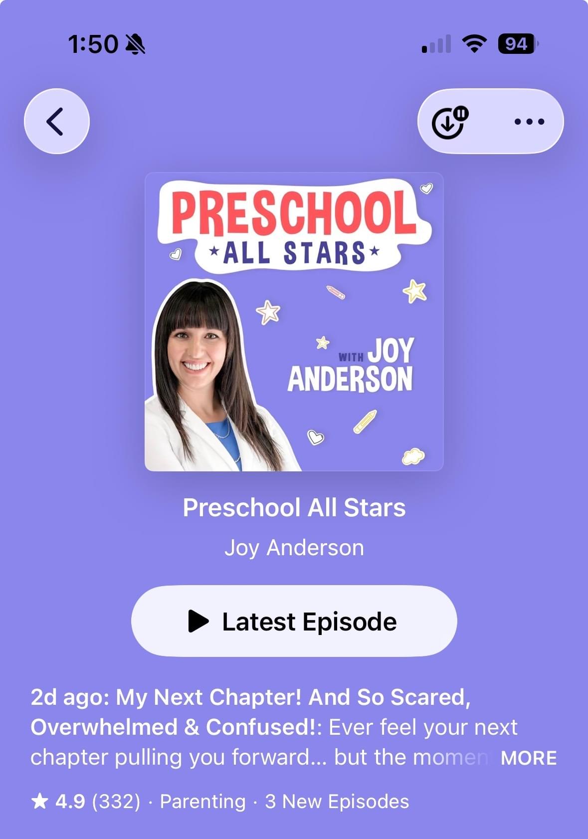 You should already have this purple Apple Podcasts app installed. If you can't find it, you can search your apps for "podcast." Search "Preschool All Stars" in the podcast app and you'll find our podcast. After you click on our podcast image, you'll come to our podcast page. Do these 3 steps: